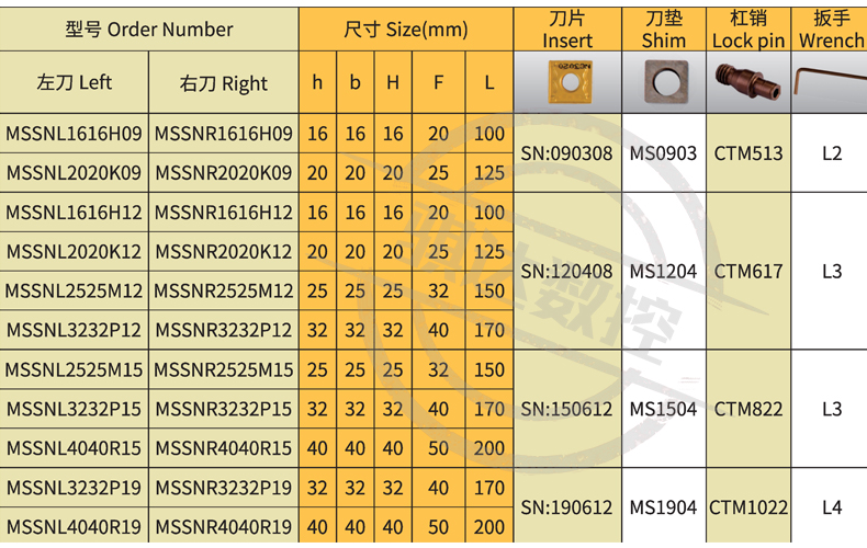 MSSNR1616H12 positive knife MSSNL1616H12 counter-knife MSSNR2020K12 positive knife MSSNL2020K12 anti-knife MSSN
