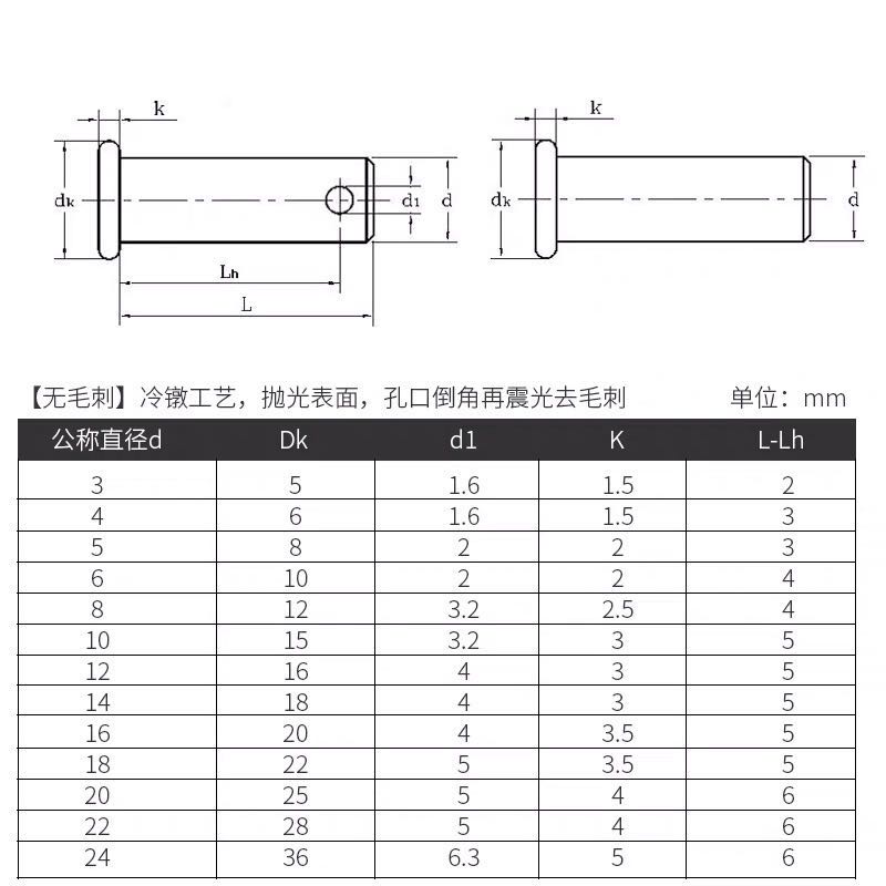 304 stainless steel pin shaft flat head with bore pin M18M20 * 50 60 60 80 80 90100120150