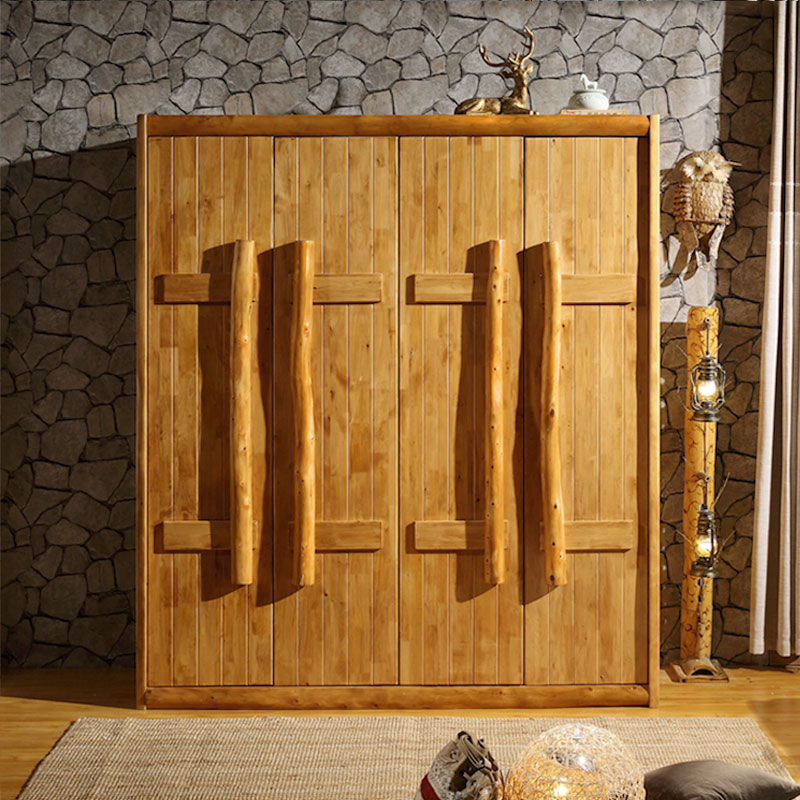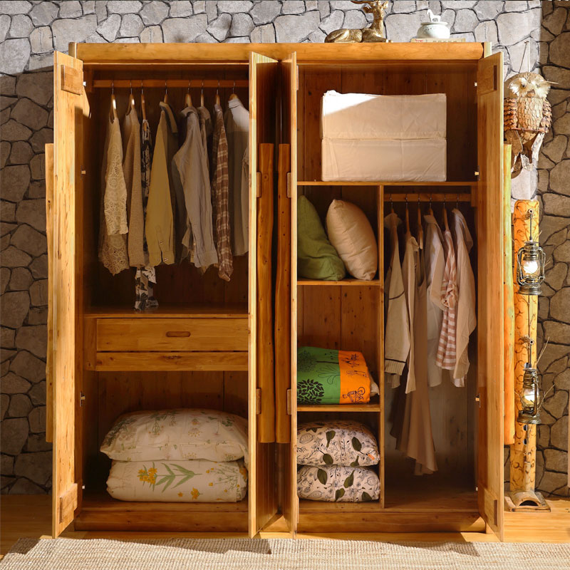 All solid wood 4 four-door wardrobe cypress overall assembly coat whole cabinet storage garden original ecological Chinese furniture