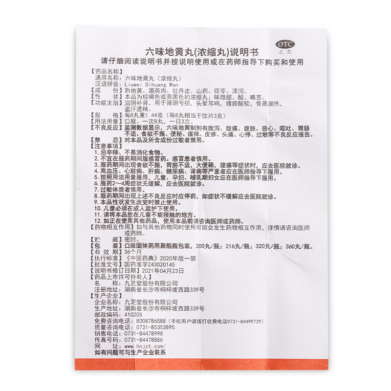 Jiuzhitang Liuwei Dihuang Pill 360 Pills Tonify the Kidney, Gujing, Strengthen the Kidney, Nourish the Jing and Strengthen the Man’s Kidney Yin Deficiency Traditional Chinese Medicine Conditioning