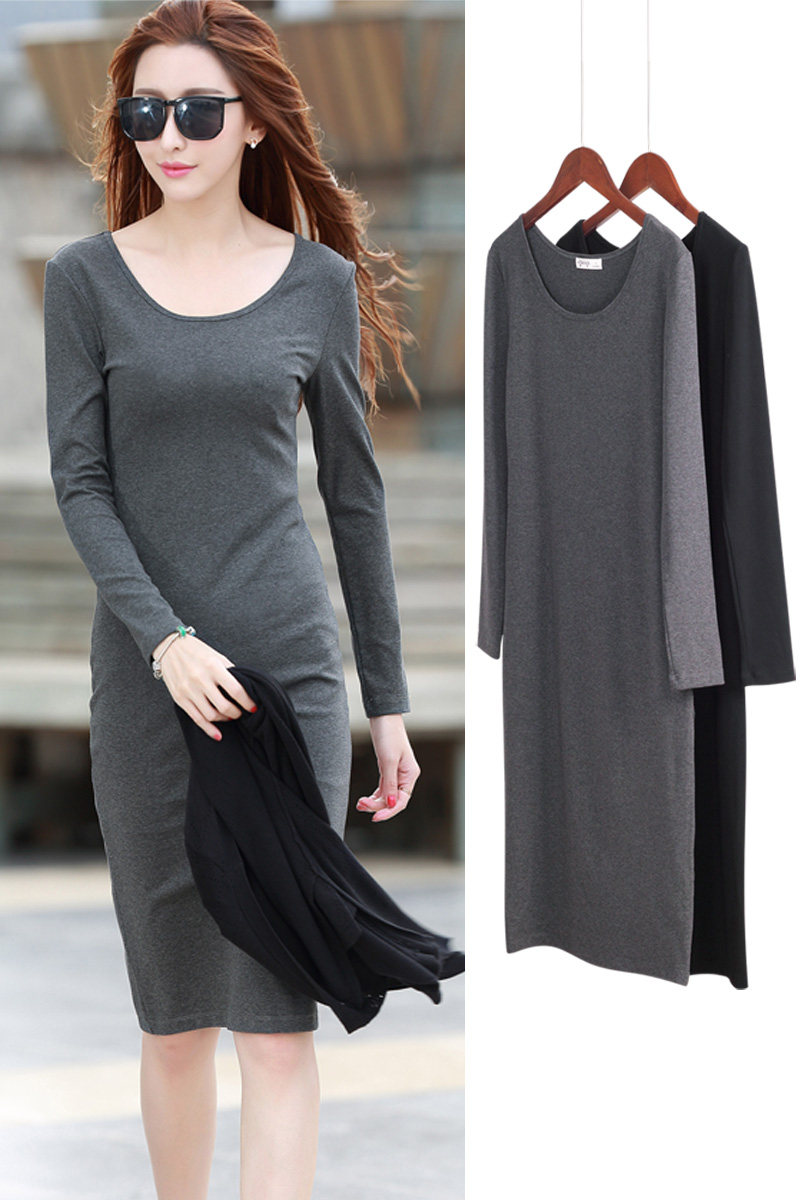 Black base skirt 2022 spring new long sleeve dress interior temperament slim long version one step step skirt women