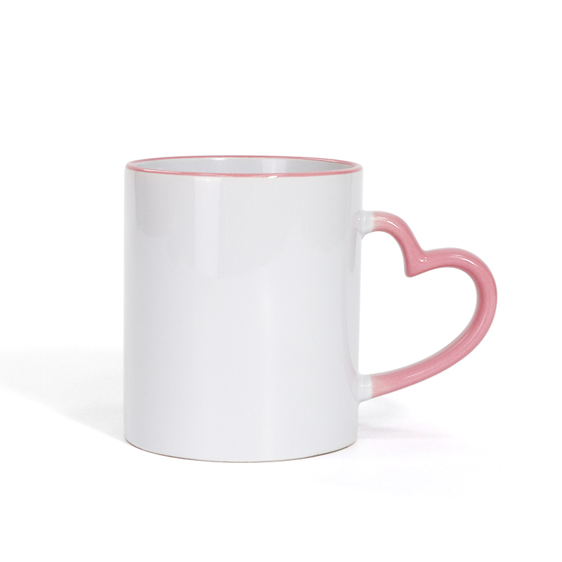 Thermal transfer cup White cup Coated cup Heart handle edge color cup Heart-shaped handle Mouth color cup Heart color cup