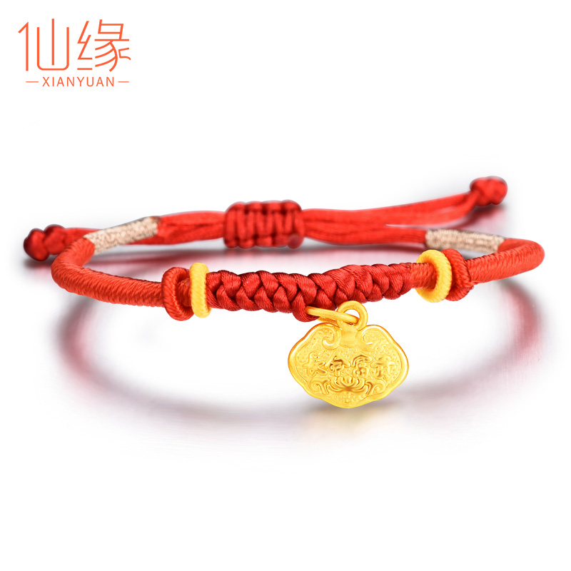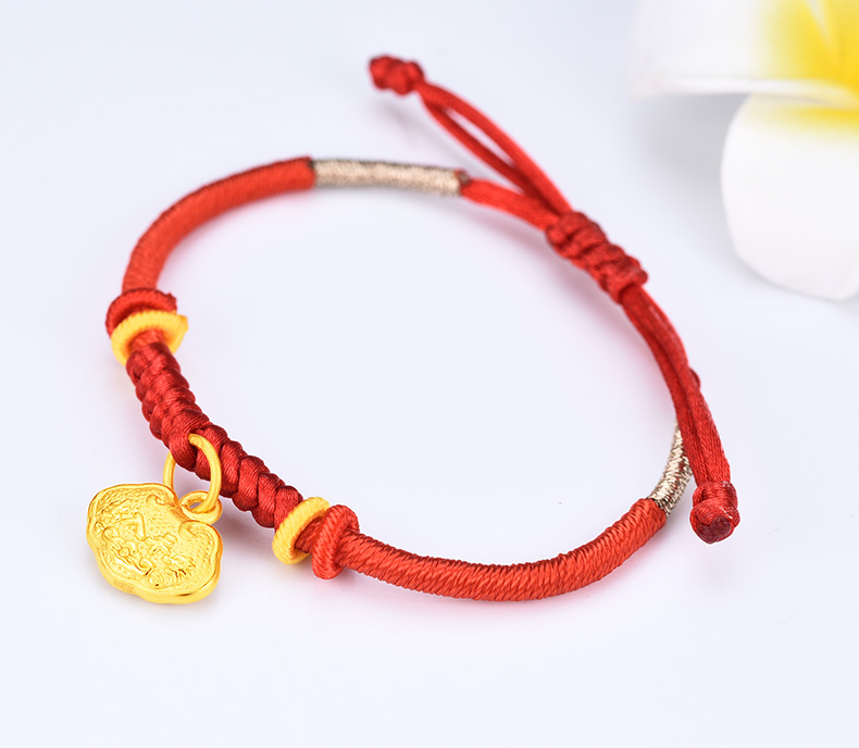Gold 999 lock about 0 7-0 8 grams send red rope send certificate (spot) Gold 999 lock about 0 7-0 8 grams woven hand rope send certificate (spot)