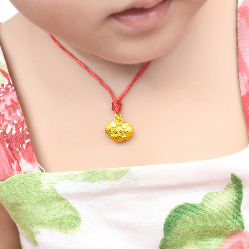 Gold lock Long life lock Children's gold lock Baby baby lock Pure gold pendant Female child full moon necklace Braided rope