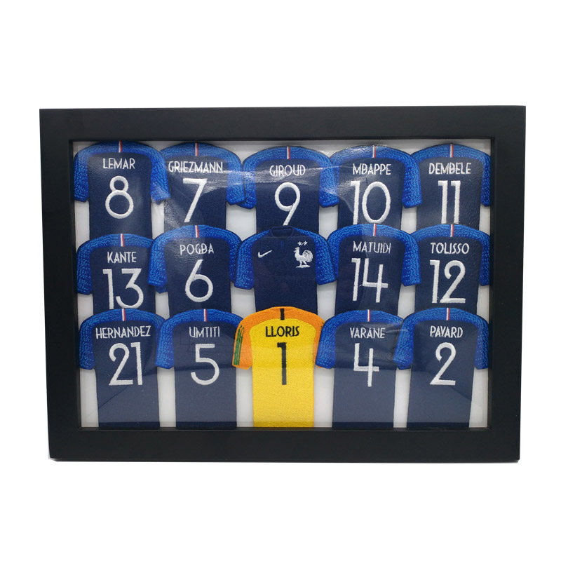 Griezmann Mbappe Pogba Giroud Kante Matuidi Uti Tiwallane Hernandez Pavarotti Dembele shirt front Karim Benzema (2014) Ribery(06 and 14