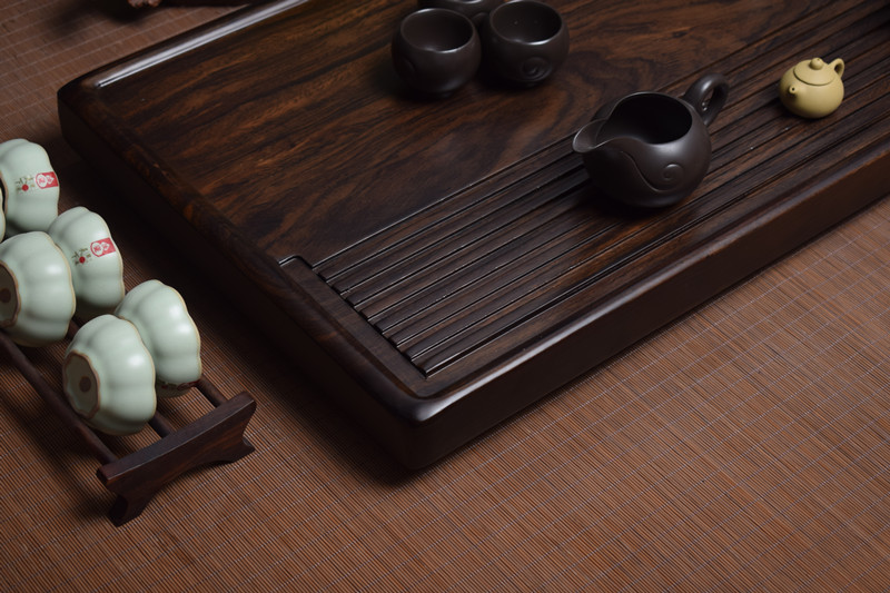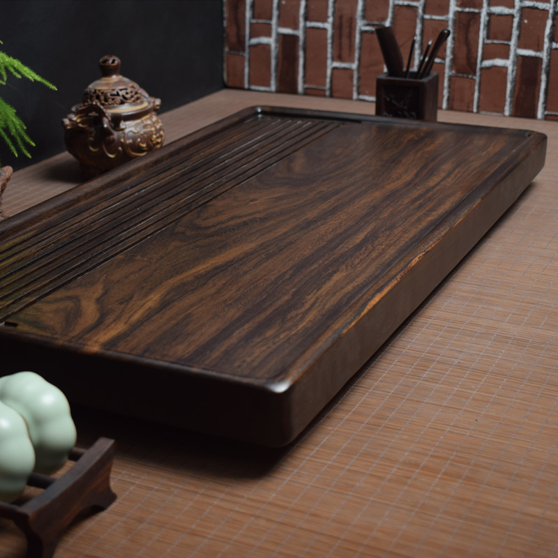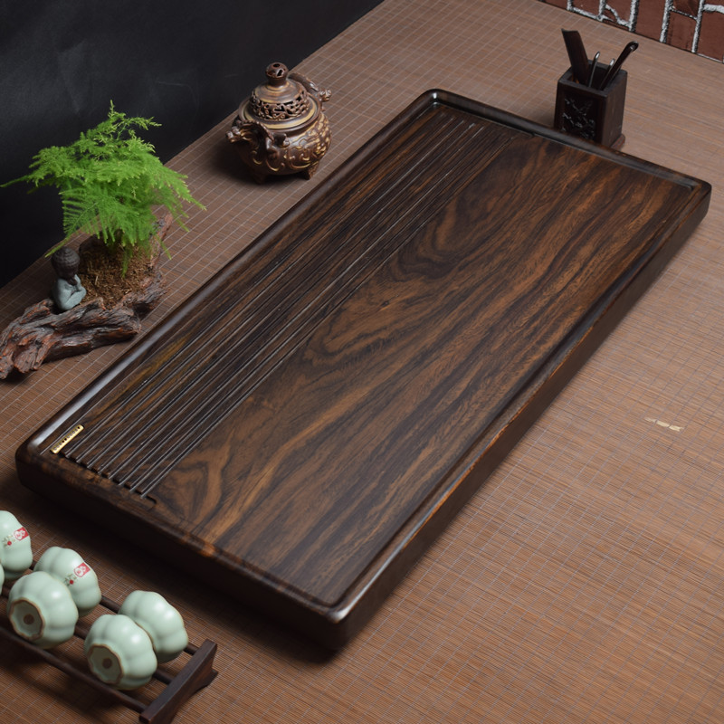 Black sandalwood tea tray home solid wood tea sea tea Taipower tea with rectangular drainage type log tray tea set-Taobao
