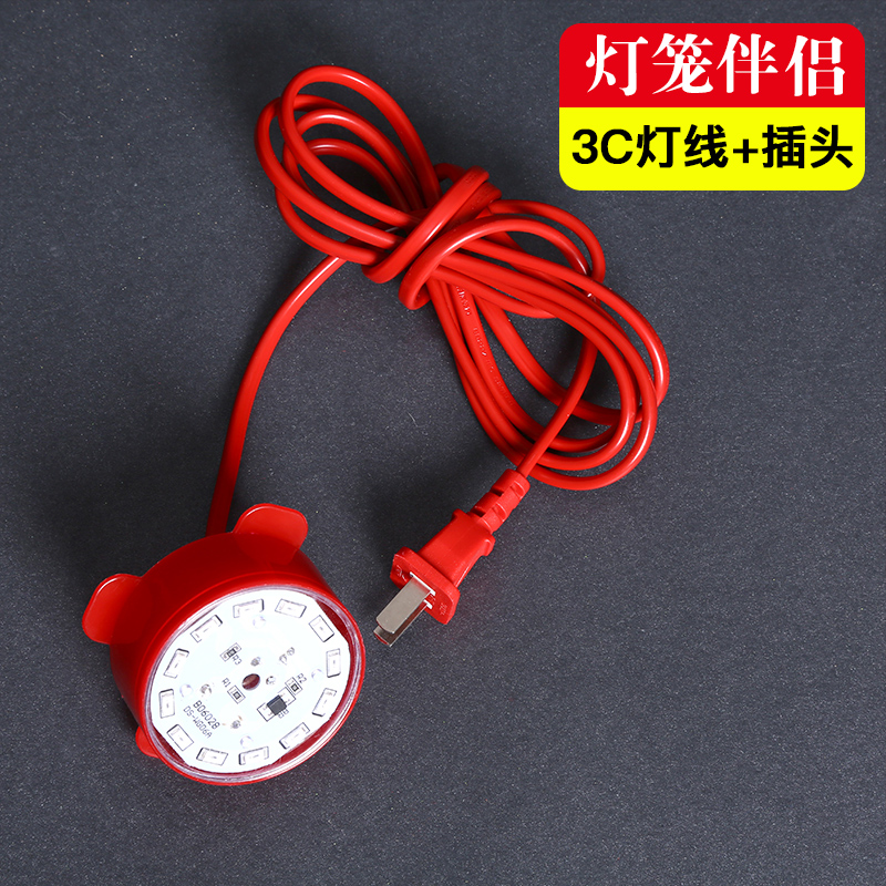 Luminous red lantern LED lamp power cord 2 meters long balcony door Spring Festival Red lantern companion wire plug wire