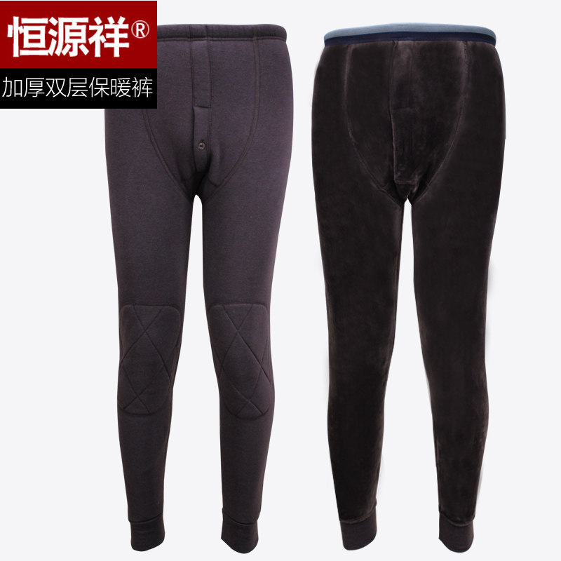 Hengyuanxiang Warm Pants Men Men's fleece thick long johns one-piece underpants line pants leggings autumn and winter cotton trousers