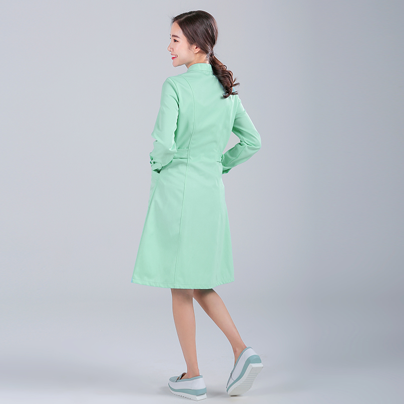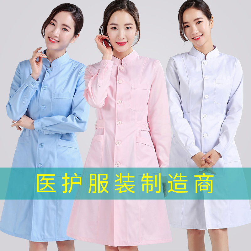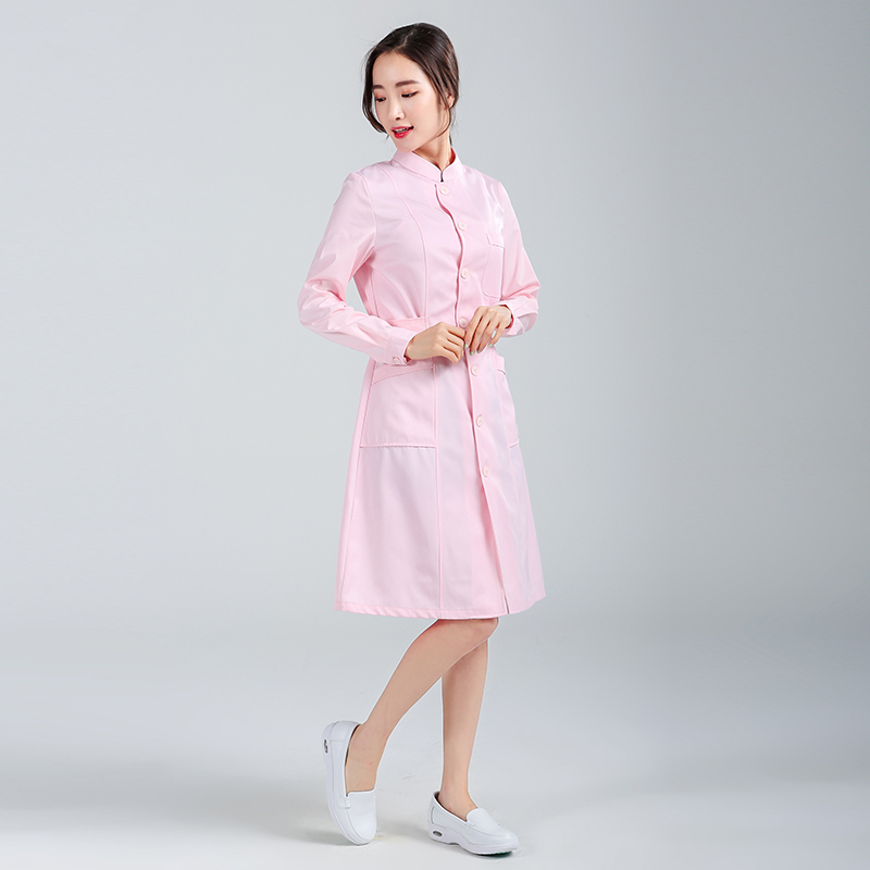 Nurse's long sleeved spring white coat is opening a pink female hospital pharmacy work clothing cosmetic suit