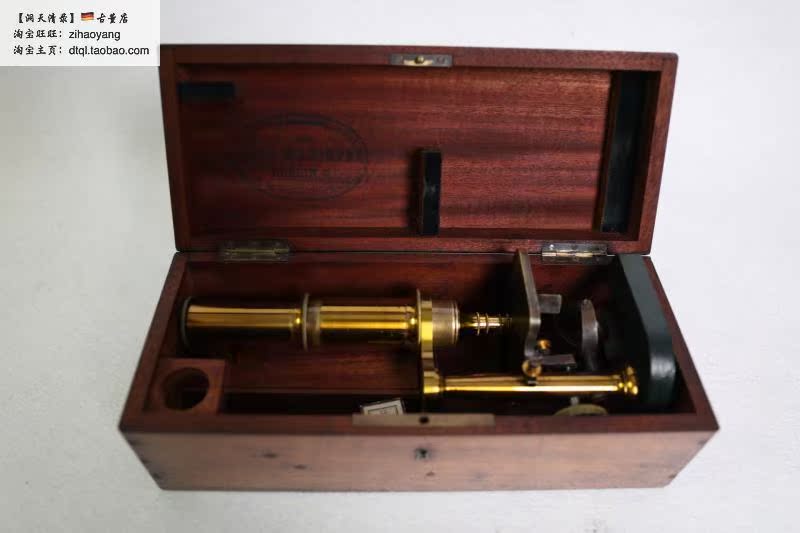 (German original dress) 1890 Paul Wächter antique full bronze microscope original wooden box genuine
