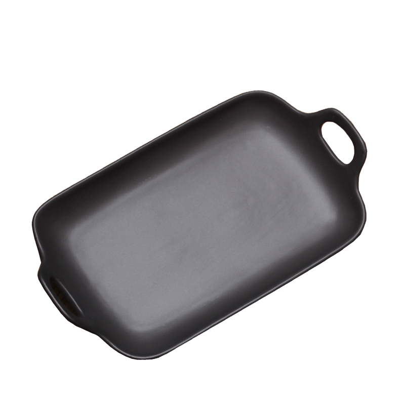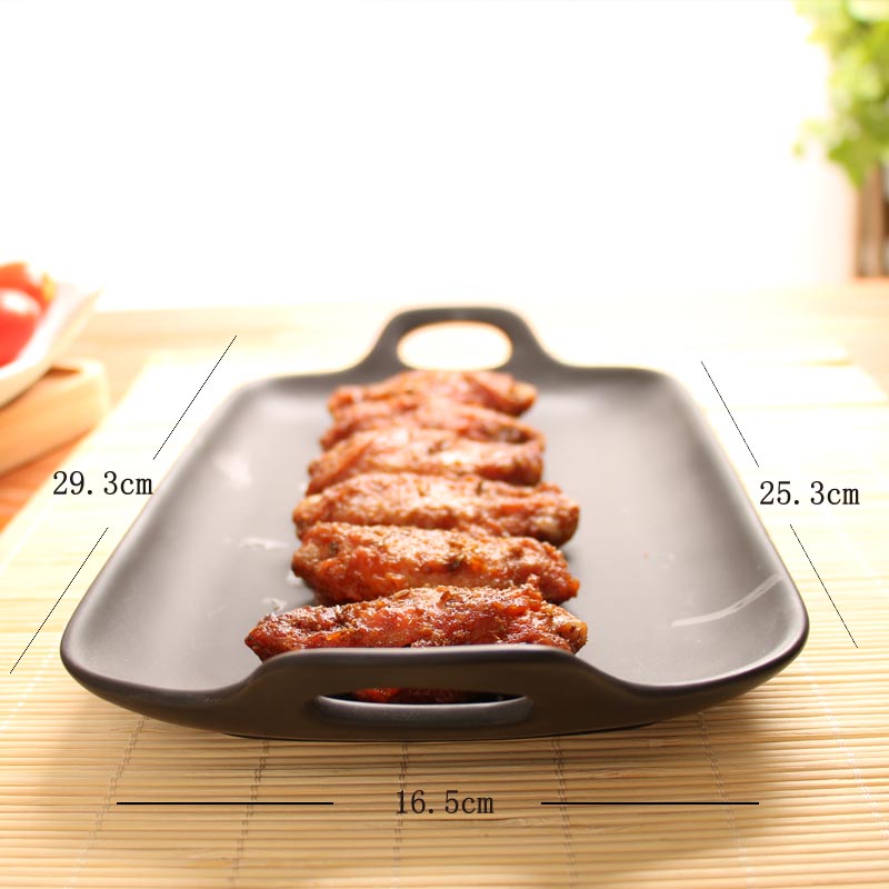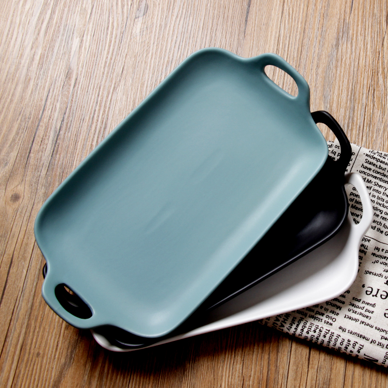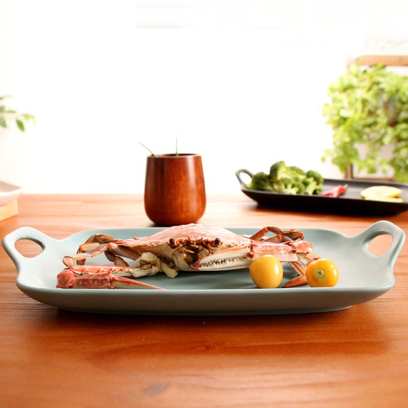 Ceramic Plate Dish Day Type Matt Glazed Grill Pan Double Ear Dish Fish Pan Water Fruit Tray Home Ceramic Cutlery