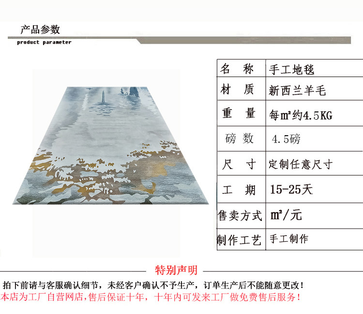 Postmodern light luxury abstract imported wool living room handmade carpet new Chinese-style bedroom study full of tatami blankets