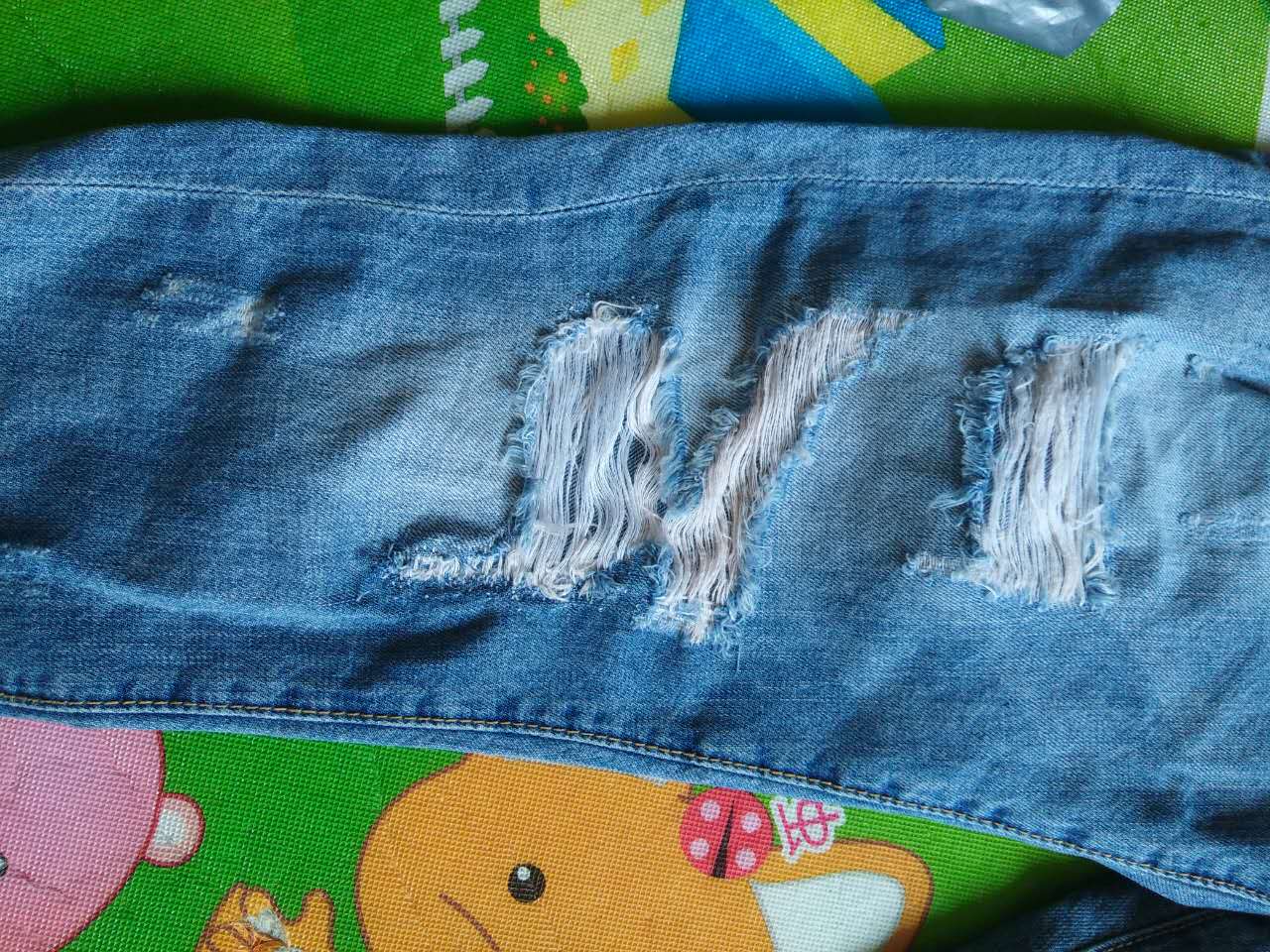 Old jeans, trousers, hole darning, no trace repair, each hole threading and rewearing, no trace darning