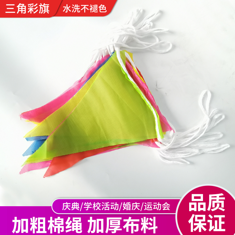 Red, white and yellow triangular flags, small colored flags, decorative highways, outdoor construction warning belts, ornaments, commanding orders, string flag celebrations