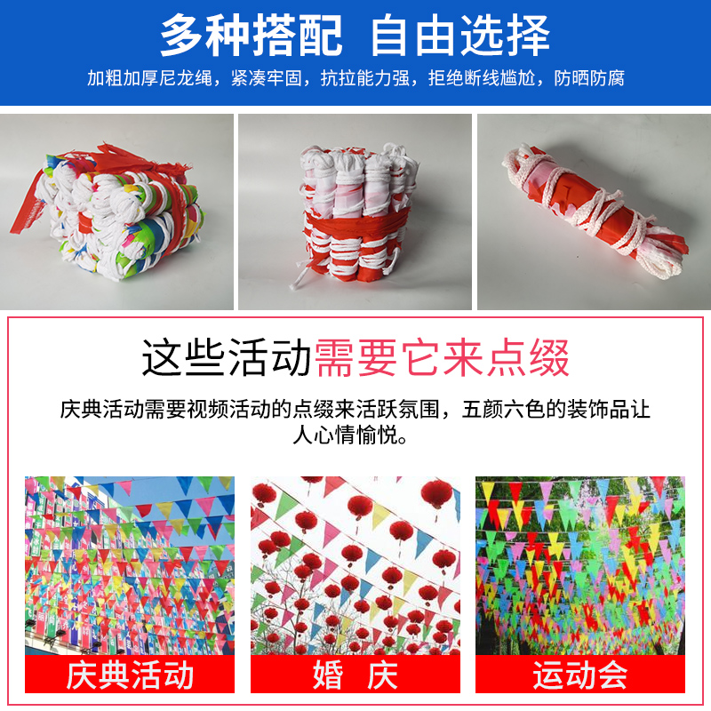 Red and white two-color flag 1 roll (polyester fiber rope) red and white two-color flag 1 roll (cotton rope) red and white two-color flag extended 1 pack (polyester fiber rope) red and white ribbon string flag five-color celebration bunting 1 roll (polyester fiber