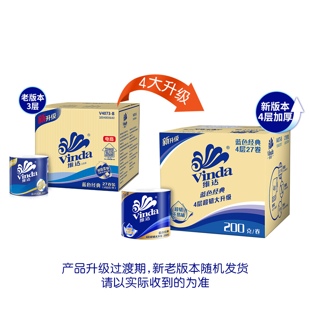 Vinda Cored roll Toilet Paper Blue classic 200gX54 roll roll paper Affordable whole box New and old replacement