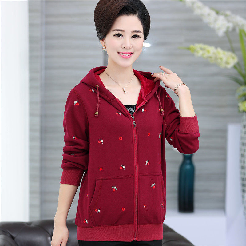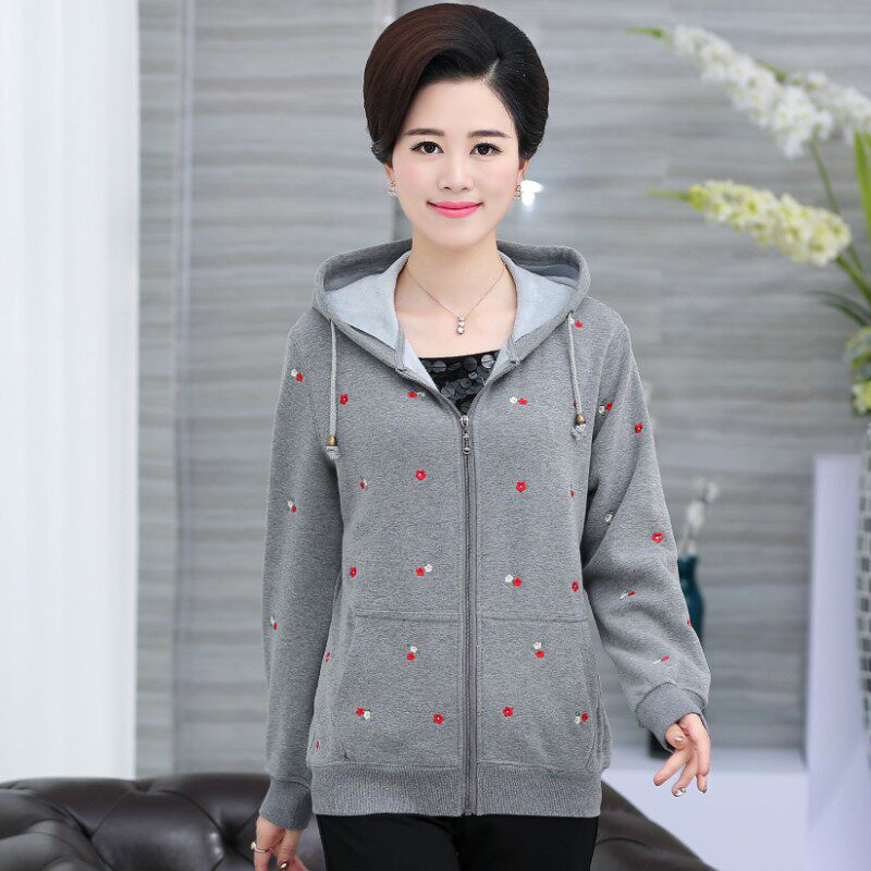 Mom clothing autumn sweater Middle-aged and elderly women's clothing spring and autumn sweater hooded jacket large size sports jacket clothing