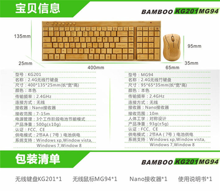 Multimedia bamboo Wireless keyboard Mouse Mouse Sets Bamboo Keyboard Two-in-one Wireless Receiver With Whole Bamboo Keyboard