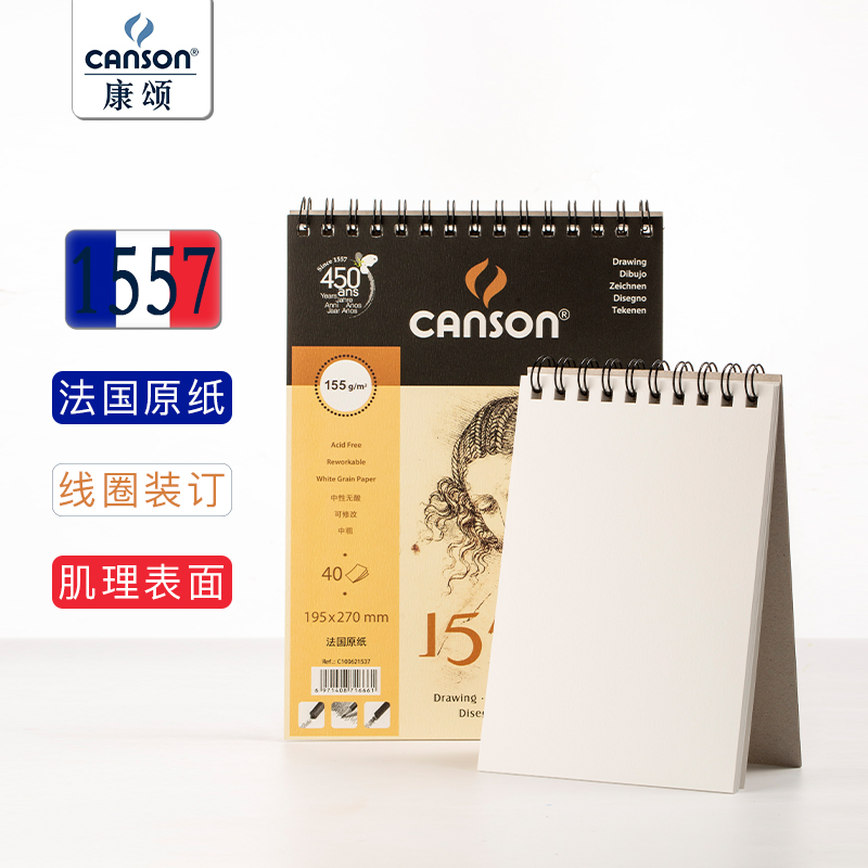 Canson 1557 Sketchbook for beginners Blank Sketchbook for students 8k Sketchbook Coil book 16k Sketchbook for art students 155g thickened 32-open sketchbook thin hand-drawn sketch paper