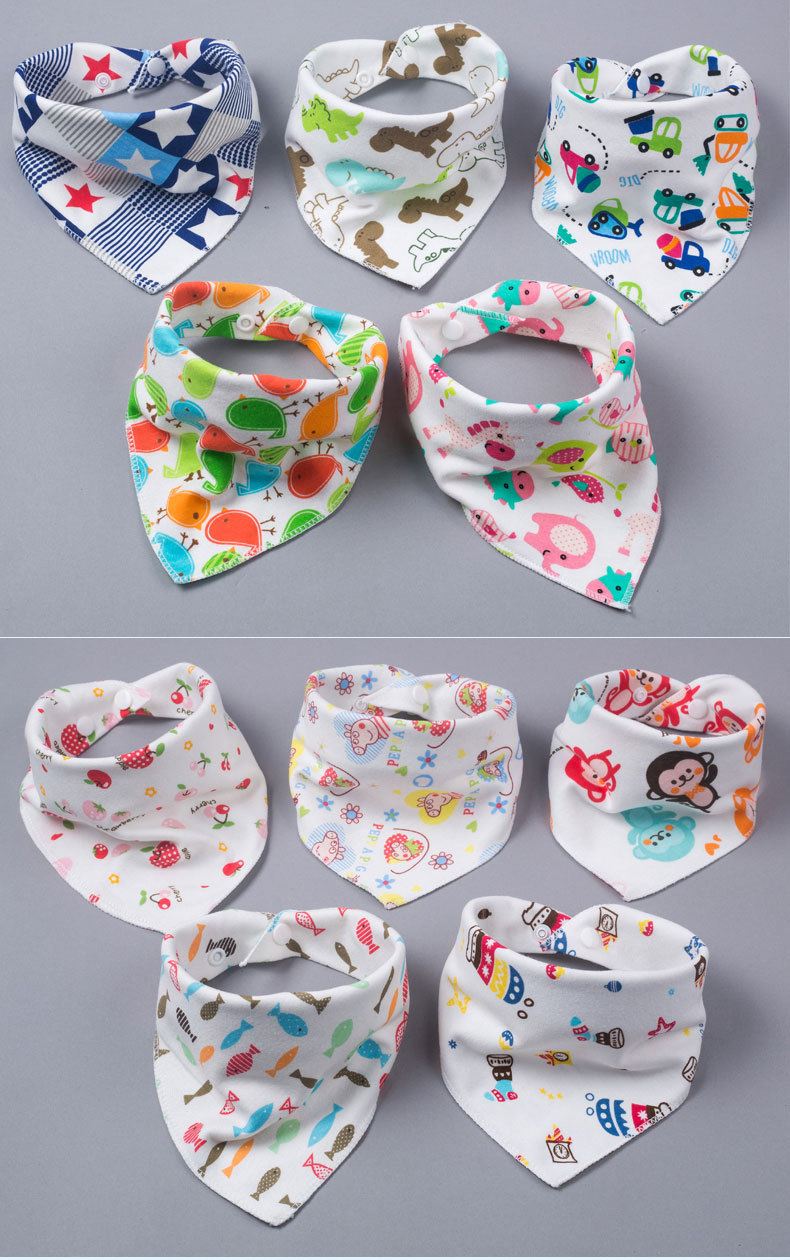 Baby triangle towel baby saliva towel pure cotton double-layer snap button newborn children headscarf bib scarf spring and summer