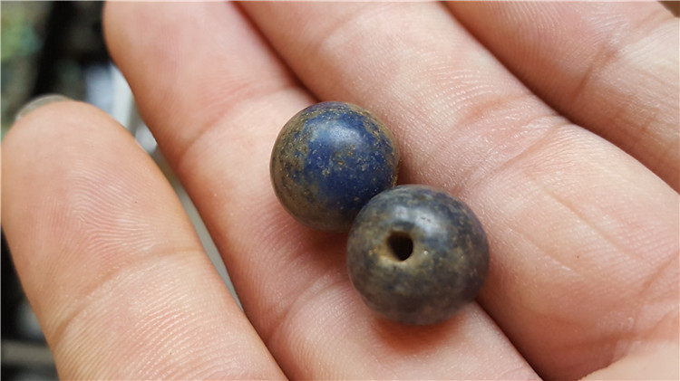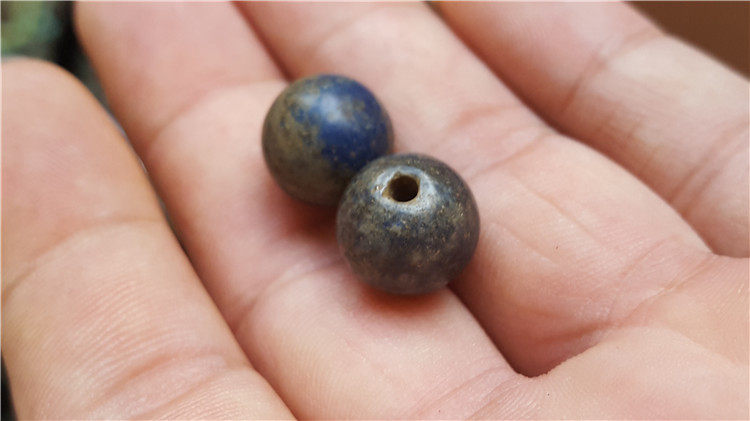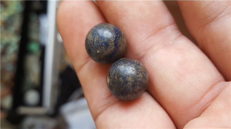 A pair of Liaojin old lapis lazuli beads 13mm bag old not old and white to send ancient beads and old beads to wear beads separated by beads and many treasures