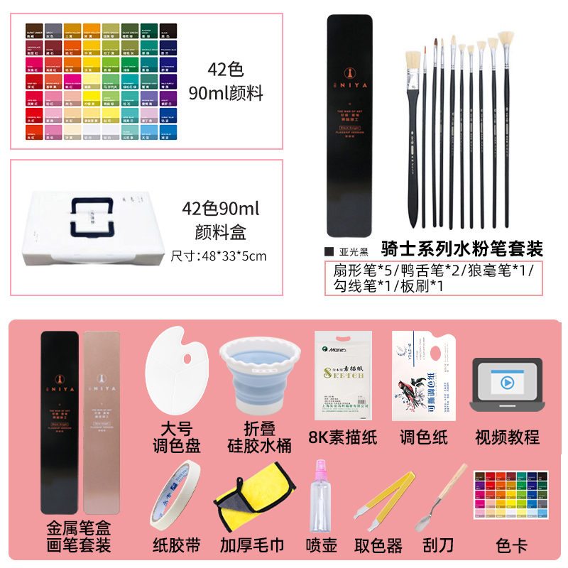 18 colors 30ml beginner set 24 colors 30ml beginner set 56 colors 30ml white box + basic tools 50 colors with white box + basic tools 42 colors 80ML with white box + basic tools 24 colors 80mL with blue box + basic tools 24 colors 80mL with powder box + basic tools 42 colors 80mL with white box + Mei kao tool 42 colors 90mL with black box + Mei Kao tool 42 colors 90mL with white box + Mei Kao tool 42 colors 60mL with white box + Us kao tool 56 colors 30mL with white box + Meko Tools 50 Colors with White Paint Box + Mekao Tools Knight BrushEscock Tool Set Mia M7 Series Gouache Pigment + Paint Box (Consult Customer Service) 18 Colors 30ml + Pigment Box (4 Colors Optional) 24 Colors 30ml + Pigment Box (4 Colors Optional) 42 Colors 80mL White Box 42 Colors 80mL Red Box 42 Colors 60ml White Box 56 Colors 30mL White Box 50 Colors White Box 42 Colors 90mL White Box 42 Colors 80mL Light Pigments 56 Colors 30mL Light Pigments 42 colors 90mL light pigment 50 color light pigment 42 colors 90 ml super gouache with gray box + Meikao tool set 42 colors 90 ml gouache with signed white box + Mei Kao tool set 42 colors 90 ml gouache on the signature black box + Mei Kao tool set 42 colors 90 ml gouache with signed white box or black box 42 colors 90 ml gouache with art war red box or black box 42 colors 80mL with red box + Mei Kao tool 42 colors 90mL with black box