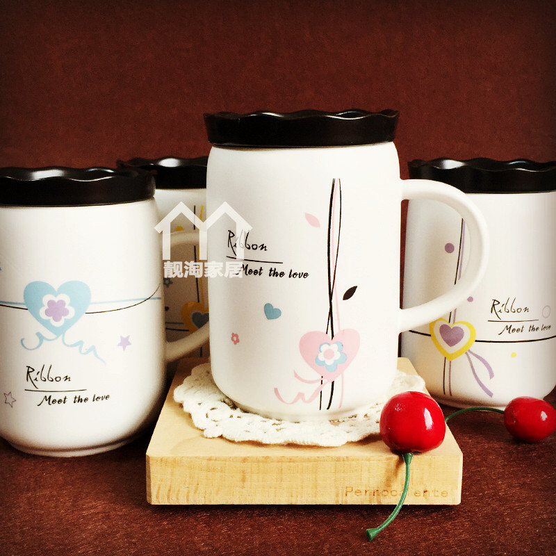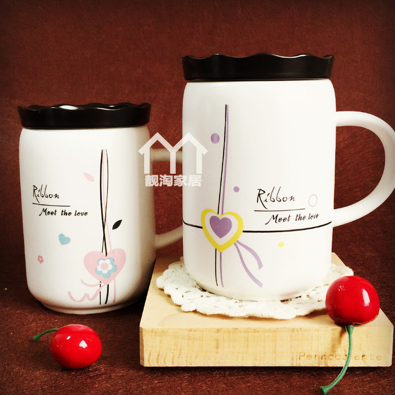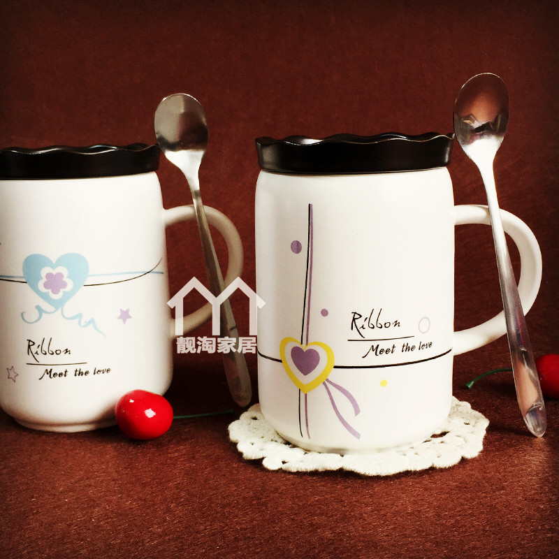 Creative Ceramic Cups With Lid Spoon Couple Cups Large Capacity Water Glasses Mark Cup Milk Coffee Cup Breakfast Cup Gift