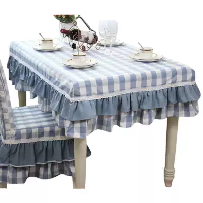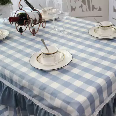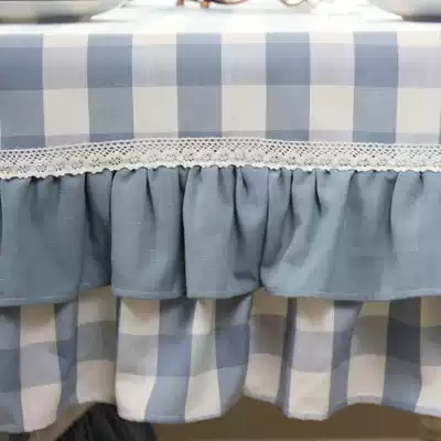Korean style pastoral blue plaid tablecloth custom-made dining table cloth tablecloth TV cabinet cover cloth dust cover