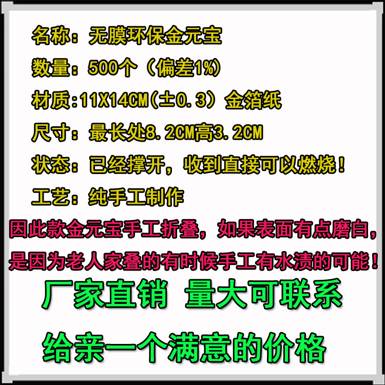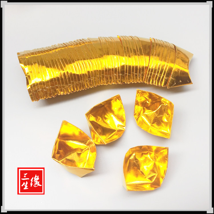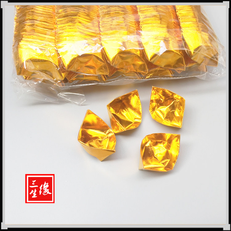 Gold ingot 500 pure handmade folding sacrificial supplies Burning paper Gold tin foil Gold paper Pluto coin Qingming seven ancestors
