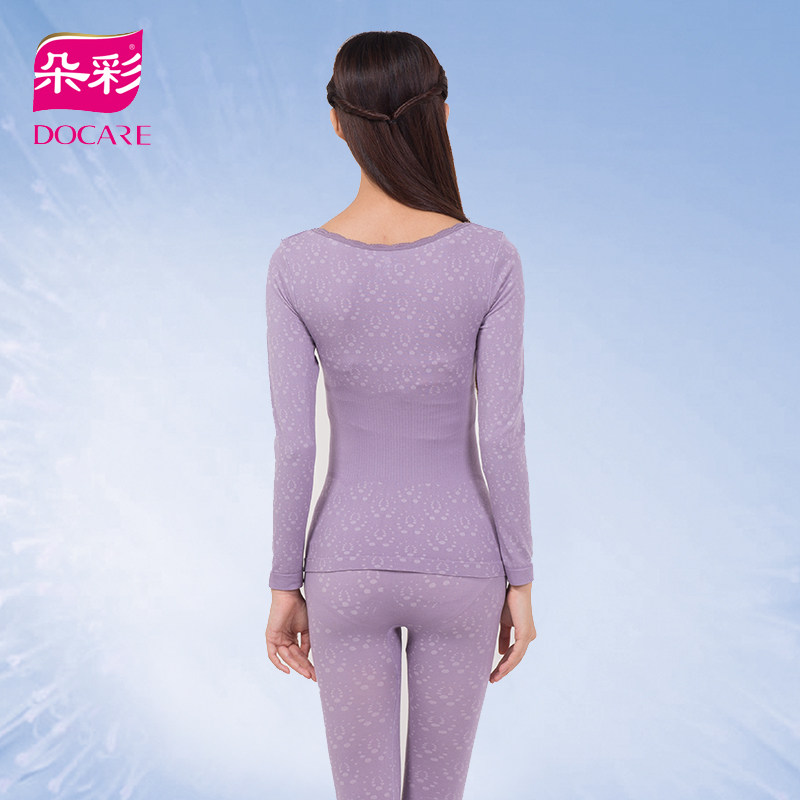 Doocai Fashion Dark Flowers Slim Beauty Heating Clothes Lady Autumn Clothes Sanitary Pants Suit Lace Low Collar Underwear