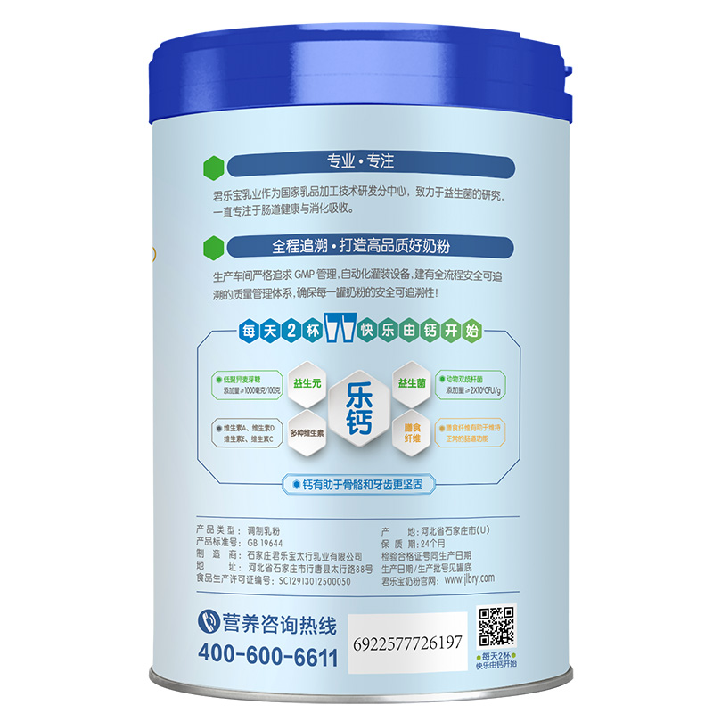 Junlebao Milk powder Le Calcium Probiotic milk powder Middle-aged adult milk powder Instant canned 800g