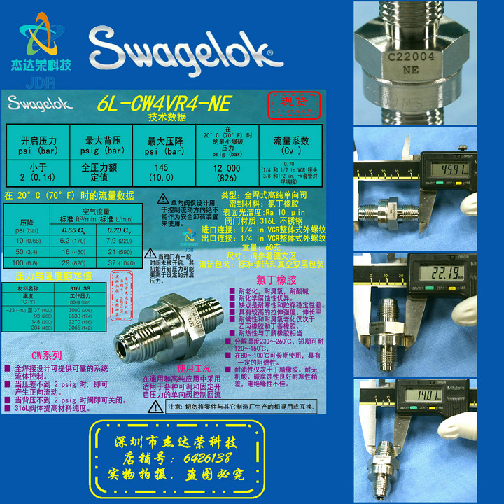 (6L-CW4VR4-NE) Swagelok Swagelok High Purity Check Valve 1 4 in Male VCR