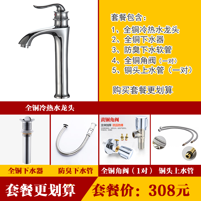 Silver all copper cold and hot tap on basin basin basin faucet wash handwash basin toilet faucet