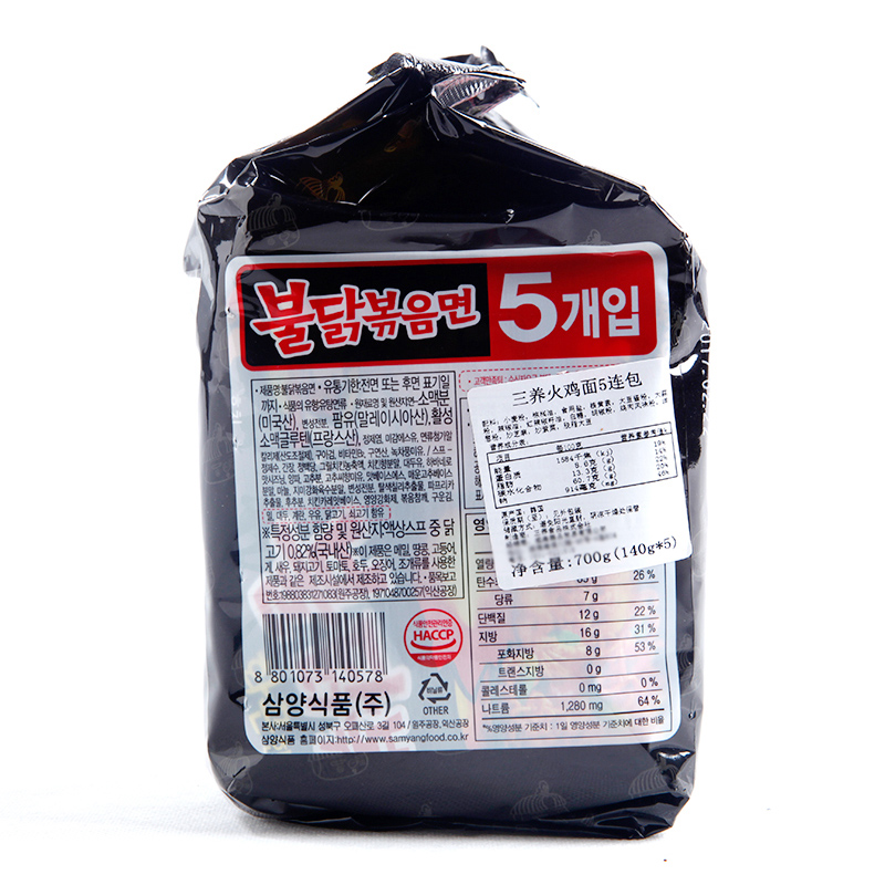 Korean Sanyang Turkey noodles 140g*5 packs Super spicy chicken flavor mixed noodles Fried ramen Vegetarian instant noodles Imported instant noodles