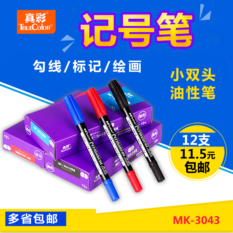 True color marker pen Black red blue mike pen hook line pen Oily pen Large round head small double-headed marker pen wholesale
