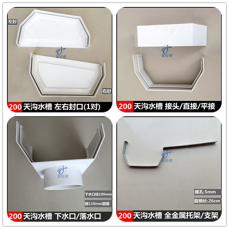 200 Gutter sink (1m) 200 Seal (1 pair) 200 seal (left) 200 seal (right)200 Joint(1pc) 200 Drain (1pc) (Caliber 1