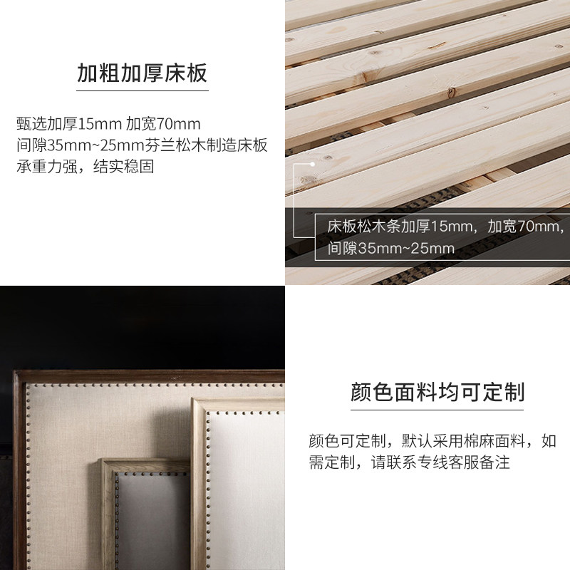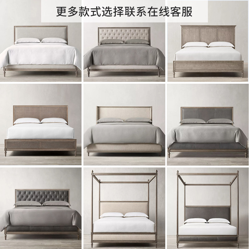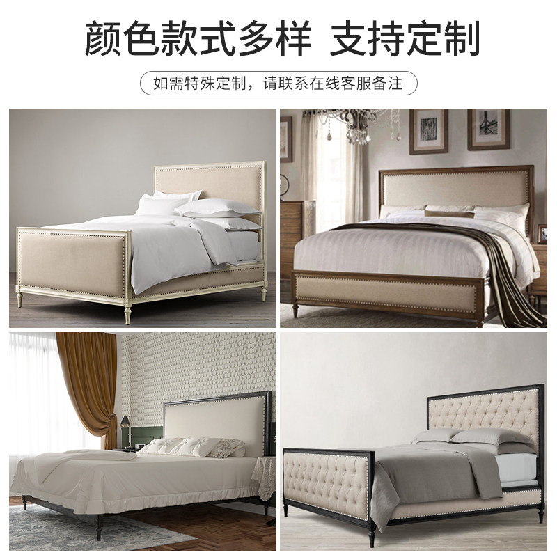 American solid wood bed 1 8 meters double bed master bedroom oak furniture custom Nordic retro French bed black 1 5