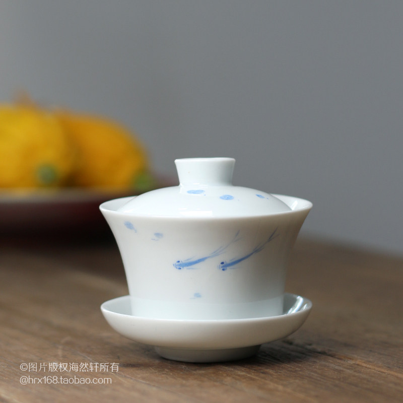 Glazed colored hand - drawn cock cup Three - talent cup Ceramic tea bowl Kung fu tea set mini - small mark