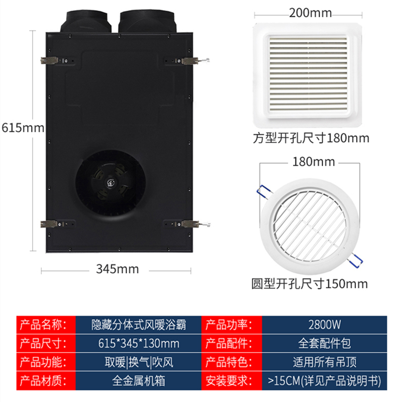 Honeycomb large board special wind heating bath bully exhaust cool bully super high power heating system pipe machine hidden air duct