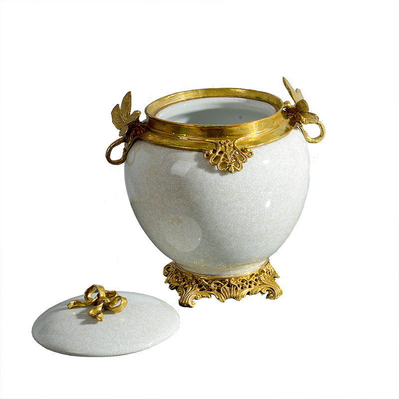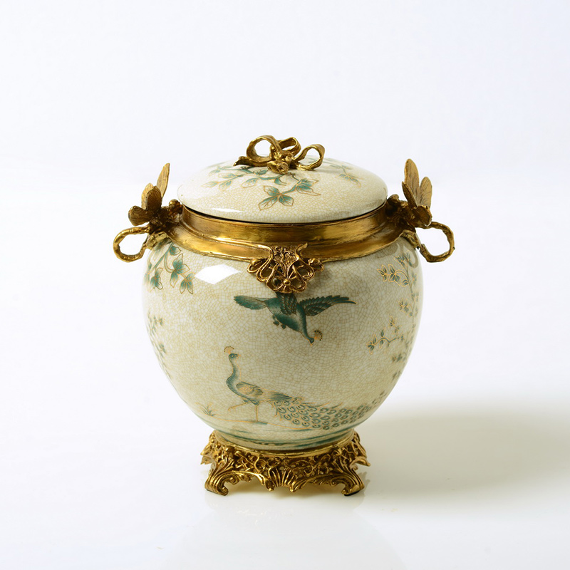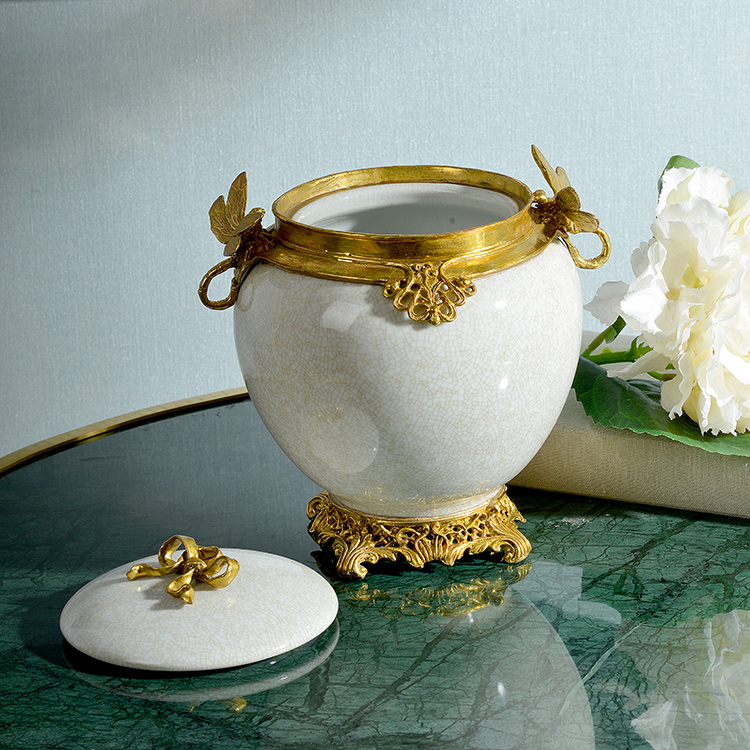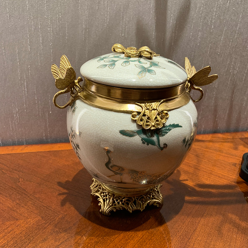 Neoclassical European-style hand-painted ceramic with copper decorative cover altar decoration Retro home villa storage tank ornaments