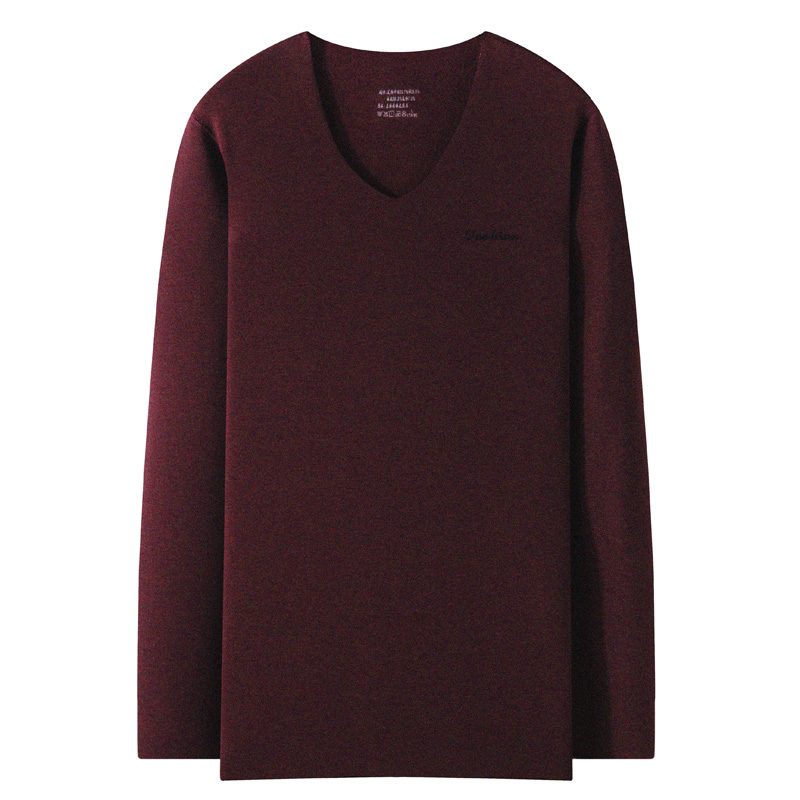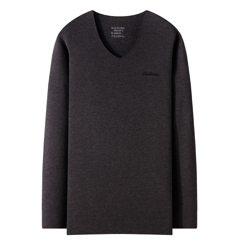 Winter men's seamless warm autumn clothes T-shirt long-sleeved velvet thick Korean version V-neck tight bottoming shirt large size slim