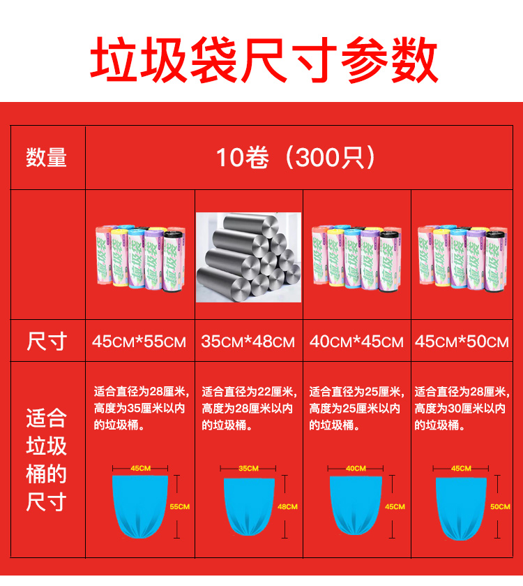 10 rolls of thickened garbage bags Household kitchen color disposable plastic bags in large garbage bags for cars with small