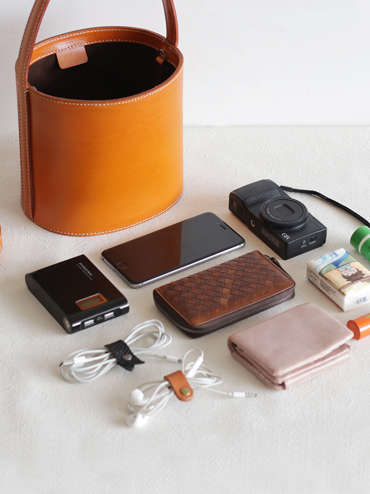 Japanese retro original handmade bucket bag vegetable tanned leather messenger bag fashion literary cowhide handbag shoulder bag