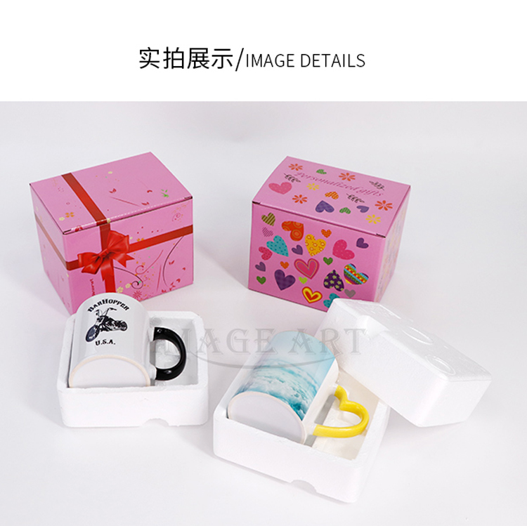 Thermal transfer cup Foam packing box White cup color changing cup with foam packing box Pink foam bag gift box
