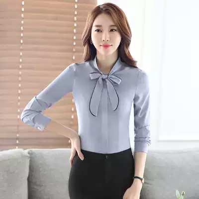 Working clothes gray shirt women's long sleeves white autumn slim dress overalls Korean version of inner shirt Women