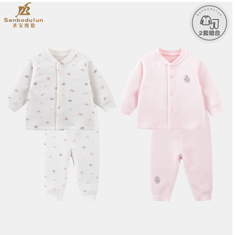 Saint Paul Duren baby suit Autumn men's and women's children's cardigan warm thick underwear Newborn clothes two sets