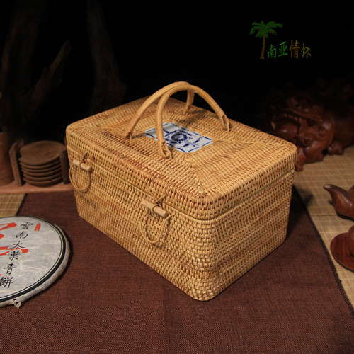 Vietnamese Rattan Storage Box Tea Set Box Puer Tea Tea Brick Box Jewelry Box Tea Ceremony Spare Parts Gift Box Packaging Box