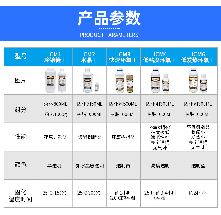CM6 Low Heat Epoxy King CM3 Fast Epoxy King CM1 Cold Mosaic King CM2 Crystal King CM4 Low Viscosity Epoxy King