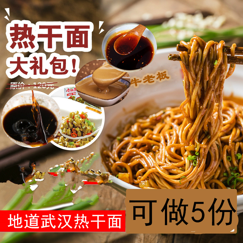 Hubei specialty Wuhan authentic hot dry noodles for 5 people noodles with mixed package noodles alkaline water dry alkaline noodles 500g