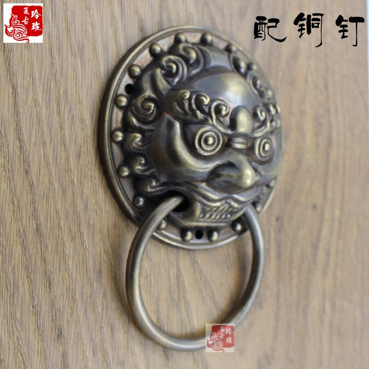 Pure copper handle antique beast head brass pull the lion head door of the beast hustle Chinese gate Kirin ra ring antique copper door
